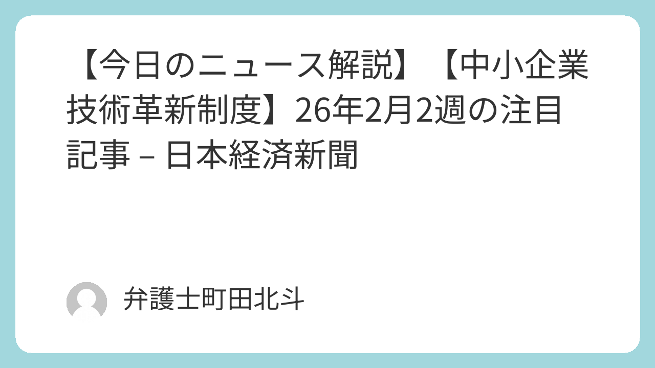 【中小企業技術革新制度】26年2月2週の注目記事 – 日本経済新聞